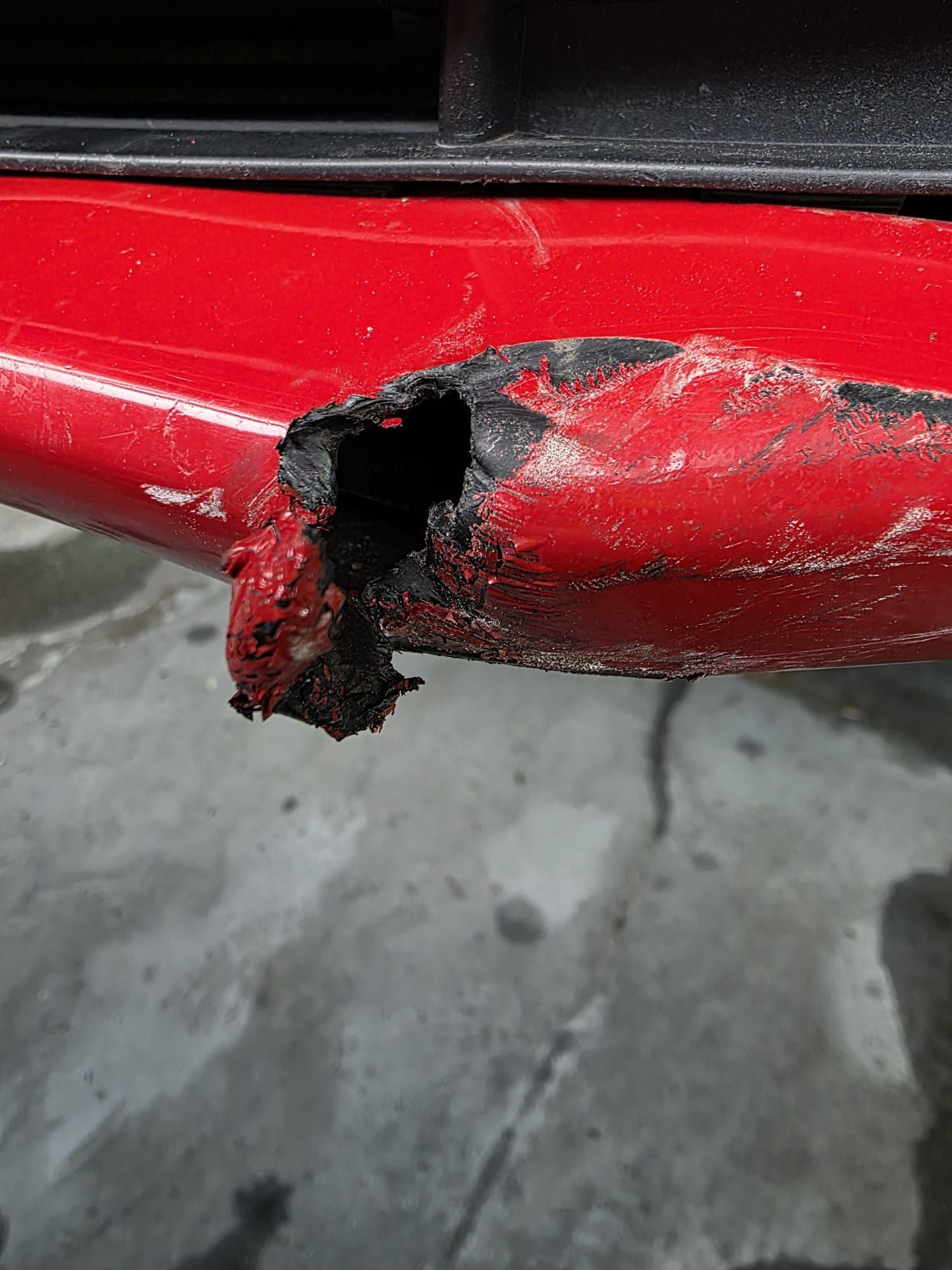 "Met mijn voorbumper tegen een paaltje aangezeten, zelfs met een gat er in is het nu weer helemaal netjes in orde!"